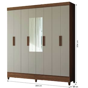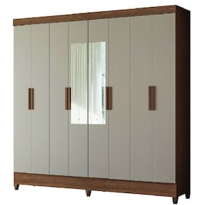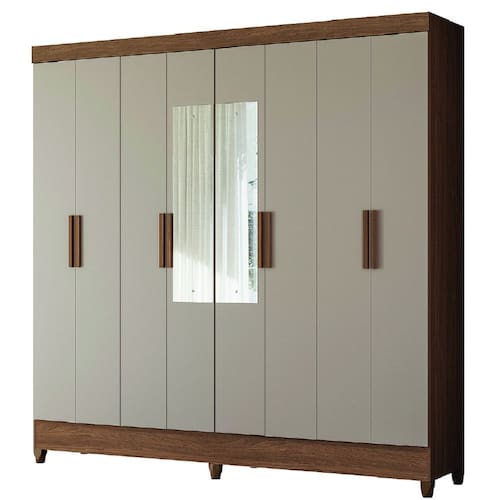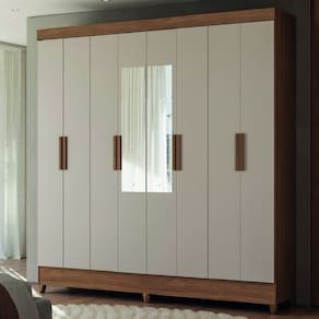 MODELO: Guarda Roupas Casal Com Espelho 8 Portas 2 Gavetas Marajó Madeirado/Off White Moval
