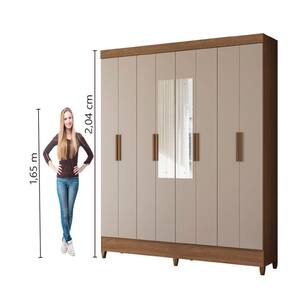 O Guarda Roupa Casal Marajó com Espelho é a escolha ideal para quem busca estilo e funcionalidade. Com 8 portas e 2 gavetas, oferece amplo espaço para roupas, cobertores, sapatos e acessórios. Seu design inteligente conta com cabideiros resistentes para roupas longas. Os puxadores em MDF trazem modernidade, e os pés em PVC garantem resistência e facilitam a limpeza. Os espelhos nas portas centrais ampliam visualmente o ambiente e proporcionam praticidade para conferir o visual completo. Fabricado com materiais de qualidade para maior durabilidade.