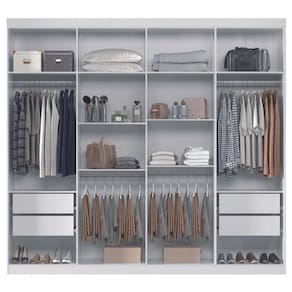 Feito em MDF, com quatro gavetas com corrediças telescópicas garantindo um deslizamento suave e silencisoso, possui dez prateleiras amplas e espaçosas podem ser utilizadas para guardar edredons, cobertores, caixas e sapatos