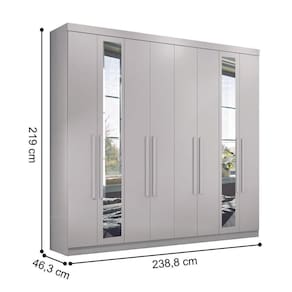 ALTURA DO PRODUTO (CM): 219 | ALTURA DO PRODUTO COM EMBALAGEM (CM): 33,4 | LARGURA DO PRODUTO (CM): 238,8 | POSSUI ESPELHOS: Sim, Possui | QUANTIDADE DE GAVETAS: 4 | COR PREDOMINANTE: Branco | PESO DO PRODUTO (KG): 148,8 | PRODUTO: Guarda roupa | MARCA: Santos Andira | MATERIAL PRINCIPAL: MDF | QUANTIDADE DE PORTAS: 8 | COMPRIMENTO DO PRODUTO (CM): 46,3 | ESTADO DE ORIGEM: PR | TIPO DE GUARDA ROUPA: Casal | LARGURA PRODUTO COM EMBALAGEM (CM): 241,3 | INSTRUÇÕES/CUIDADOS: - Limpar com flanela ou pano macio seco, não utilizar produtos abrasivos, | CONTEÚDO DA EMBALAGEM: 1 Guarda Roupa e 1 Espelho | COMPRIMENTO PRODUTO COM EMBALAGEM (CM): 47 | PESO PRODUTO COM EMBALAGEM (KG): 154,35 | MATERIAL PARA FILTRO: MDF | DESCRIÇÃO DO TAMANHO: 219x238,8x46,3 cm | CORES DO PRODUTO (FILTRO DE CORES): Branco | PRODUTO PRECISA DE MONTAGEM?: Sim,Sugerimos a contratação de um montador para a montagem do produto. Não nos responsabilizamos por causadas no ato da montagem.
