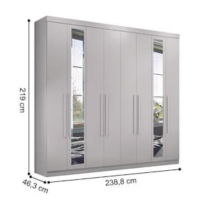 Requer montagem: Sim | Inclui manual de montagem: Sim | Quantidade de caixas de embalagem: 4 | Comprimento: 46,3 | Profundidade: 46,3 | Altura: 219 | Largura: 238,8 | PRODUTO: Guarda roupa | ALTURA DO PRODUTO COM EMBALAGEM (CM): 33,4 | COMPRIMENTO PRODUTO COM EMBALAGEM (CM): 47 | LARGURA PRODUTO COM EMBALAGEM (CM): 241,3 | CONTEÚDO DA EMBALAGEM: 1 Guarda Roupa e 1 Espelho | INSTRUÇÕES/CUIDADOS: - Limpar com flanela ou pano macio seco, não utilizar produtos abrasivos, | DESCRIÇÃO DO TAMANHO: 219x238,8x46,3 cm | QUANTIDADE DE PORTAS: 8 | QUANTIDADE DE GAVETAS: 4 | COMPRIMENTO DO PRODUTO (CM): 46,3 | CORES DO PRODUTO (FILTRO DE CORES): Branco | MARCA: Santos Andira | ALTURA DO PRODUTO (CM): 219 | PRODUTO PRECISA DE MONTAGEM?: Sim,Sugerimos a contratação de um montador para a montagem do produto. Não nos responsabilizamos por causadas no ato da montagem. | MATERIAL PRINCIPAL: MDF | POSSUI ESPELHOS: Sim, Possui | COR PREDOMINANTE: Branco | TIPO DE GUARDA ROUPA: Casal | PESO DO PRODUTO (KG): 148,8 | PESO PRODUTO COM EMBALAGEM (KG): 154,35 | ESTADO DE ORIGEM: PR | MATERIAL PARA FILTRO: MDF | LARGURA DO PRODUTO (CM): 238,8