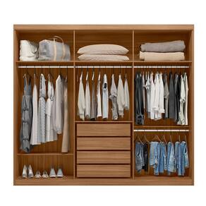 que tal o guarda-roupa dalila? um quarto bem estruturado necessita de bom espaço para armazenar roupas, acessórios e cosméticos, e isso tudo você encontra no guarda-roupa dalila. com tamanho ideal para ser compartilhado por um casal, o móvel conta com divisão em cabideiros, prateleiras, gavetas e maleiros, assim todas as peças ganham bom lugar, desde as pequenas até as que precisam ficar estendidas. além da usabilidade, o design destaca as portas de correr, as linha retilíneas e o espelho central, enriquecendo a decoração e dando a sensação de amplitude ao cômodo. ah, esse modelo é flex, então você pode escolher o acabamento da porta na hora da montagem, como mostram as imagens ;) Marca: Modern
