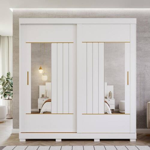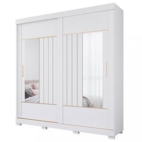Guarda Roupa Casal com Espelho e Pes 2 Portas de Correr 100 MDF Ayla Panan - Branco