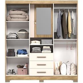 Caracteristicas: 4 portas 3 gavetas com corredicas telescopicas Espelho com recuo e portas ocultas Estrutura em MDP 15 mm Otima distribuicao interna