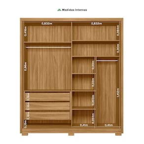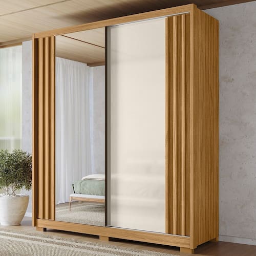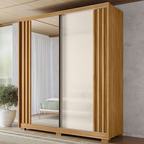 Guarda-Roupa Colorado: eleve seu quarto com estilo e organização! Possui 3 gavetas telescópicas para praticidade, portas deslizantes anti-empeno, espelhos para ampliar o espaço, detalhes ripados em MDF que agregam elegância, excelente distribuição interna para otimizar o armazenamento, cabideiros em alumínio para durabilidade e molduras laterais robustas de 2,5cm que conferem solidez e beleza. A escolha ideal para um quarto funcional e sofisticado! Acabamento da Prateleira: Pintura UV Escala de Brilho da Prateleira: Semi-Fosco Possui Cabideiros: Sim Acabamento da Gaveta: Pintura Texturizada UV Material do Puxador da Gaveta: MDP Possui Organizador de Gaveta: Não Acabamento da Porta: Pintura UV Escala de Brilho da Porta: Semi-Brilho Altura do Espelho: 209 cm Altura dos Pés: 7 cm Altura Máxima dos Pés: 7.0000 Ambiente Principal: Quarto codigo_ean: 7900288291394 Complexidade da Montagem: Alta: deve ser montado por um montador especializado Cor: Freijó/Off White Cor da Porta: Off White Cor do Produto: Freijó/Off White Cor Interna: Freijó Escala de Brilho: Semi-Fosco Espessura da Estrutura (mm): 2,5 mm Espessura das Portas (mm): 12 mm Espessura das Prateleiras (mm): 15 mm Espessura do Espelho: 3 mm Espessura do Fundo (mm): 3 mm Espessura do Fundo das Gavetas (mm): 2,5 mm Formato do Espelho: Retangular Gaveta com Chave: Não Itens Inclusos: 1 Guarda-Roupa, Kit Ferragens e Manual de Montagem Largura do Espelho: 59 cm Linha ou Coleção: Inspiração Manual de Montagem e Instalação: https://product-hub-prd.madeiramadeira.com.br/992106/documents/f1d0ac83-80f1-4afc-ad01-6115a63ae7be280771363501744057053094.pdf Marca: Moval Material da Gaveta: MDP Material da Porta: MDF/MDP Material da Prateleira: MDP Material dos Pés: PVC Material Principal: MDF/MDP modular: Não Necessita Montagem: Sim Origem do Produto: Nacional Peso: 132,03 kg Peso Máximo por Gaveta: 6 kg Peso Máximo por Prateleira: 6 kg Possui Calceiros: Não Possui Espaço para Vestidos Longos: Sim Possui Espelho: Sim Possui Espelho Interno: Não Possui Ganchos: Não Possui iluminação: Não Possui Nichos: Sim Possui Painel de TV: Não Possui Penteadeira: Não Possui Pés: 06 Possui Portas: Sim Possui Prateleiras: Sim Produto Montado: Sim Quantidade de Cabideiros: 02 Cabideiros Quantidade de Espelho: 01 Quantidade de Gavetas: 03 Gavetas Quantidade de Portas com Espelhos: 1 Porta com Espelho Quantidade de Prateleiras: 06 Prateleiras Recomendações de Uso, Manutenção e Limpeza: Utilizar produtos específicos para limpeza de móveis Sistema de Montagem: possui Tipo de Corrediça da Gaveta: Metálica Telescópica Tipo de Dobradiça/Corrediça da Porta: Metálica Tipo de Fixação do Espelho: Silicone Tipo de Gaveta: Interna Tipo de Guarda-Roupa: Casal Tipo de Puxador da Gaveta: Embutido Tipo de Puxador da Porta: Embutido