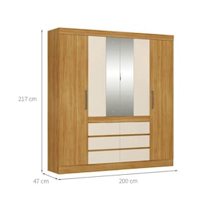 O Guarda-Roupa Trevi possui estrutura em MDP 12 e 15mm, portas articuladas com dobradiças metálicas, gavetas com corrediças roldana, espelho comum 3mm e acabamento foscoVendido e entregue por MOBLY COMERCIO VAREJISTA LTDA.