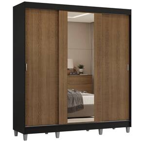 O acabamento da estrutura é em preto e o das portas no tom amadeirado Rustic, combinando resistência e sofisticação. Com design pensado para unir beleza e funcionalidade, o Guarda-Roupa Reno com pés é perfeito para transformar seu quarto em um espaço moderno e prático.