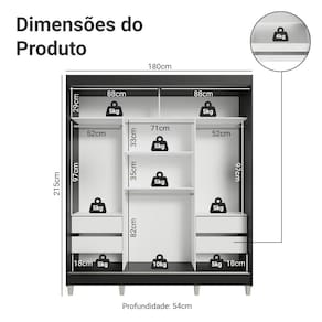 Essa versão possui três portas de correr, sendo duas com espelhos, que trazem mais praticidade no dia a dia. Os trilhos de alumínio garantem deslizamento suave e silencioso, otimizando o espaço do quarto. Por dentro, o guarda-roupa oferece quatro gavetas espaçosas com corrediças metálicas e três cabideiros, proporcionando espaço ideal para roupas, acessórios, malas e outros itens, mantendo tudo sempre organizado.