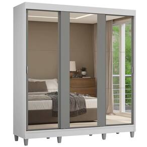 Possui quatro gavetas espaçosas, ideais para organização de roupas e acessórios, com corrediças metálicas para maior durabilidade. Conta também três cabideiros, garantindo que tudo tenha seu lugar. O acabamento de alta resistência é em Branco para a estrutura e Cinza para as portas, unindo elegância e resistência.