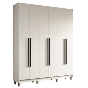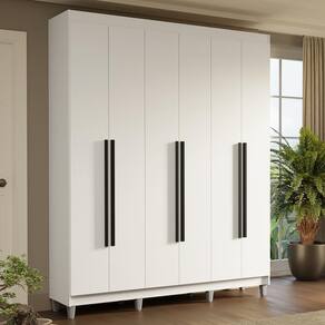 Com acabamento de alta resistência, o Guarda-Roupa Saturno oferece durabilidade por muito mais tempo. A estrutura branca e os puxadores em Preto criam um visual sofisticado que se adapta a qualquer estilo de decoração. Os puxadores de 80 cm, fabricados em MDF, são um dos grandes diferenciais, trazendo um design alongado e moderno. Os pés adicionam elegância e facilitam a limpeza, elevando o design do móvel.