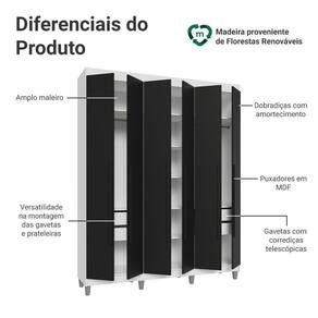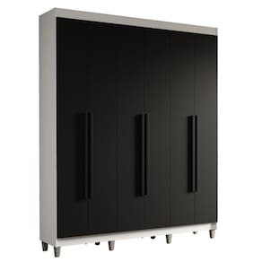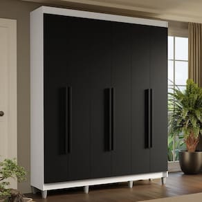 Com acabamento de alta resistência, o Guarda-Roupa Saturno oferece durabilidade por muito mais tempo. A estrutura branca e as portas e puxadores pretos criam um visual sofisticado que se adapta a qualquer estilo de decoração. Os puxadores de 80 cm, fabricados em MDF, são um dos grandes diferenciais, trazendo um design alongado e moderno. Os pés adicionam elegância, elevando o móvel e facilitando a limpeza.