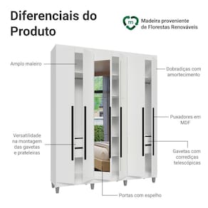 - Um Guarda-Roupa com seis portas batentes sendo duas com espelho