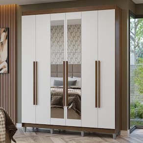 - Um Guarda-Roupa com seis portas batentes sendo duas com espelho