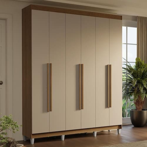 - Um Guarda-Roupa com seis portas batentes