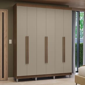 Com acabamento de alta resistência, o Guarda-Roupa Venus garante durabilidade por muito mais tempo. A estrutura e os puxadores em tom amadeirado Rustic combinam com as portas no tom Crema, criando um visual elegante e moderno. Os puxadores de 80 cm, fabricados em MDF, são um diferencial, trazendo um design alongado e moderno. Os pés elevam o guarda-roupa, conferindo elegância e facilitando a limpeza do ambiente.