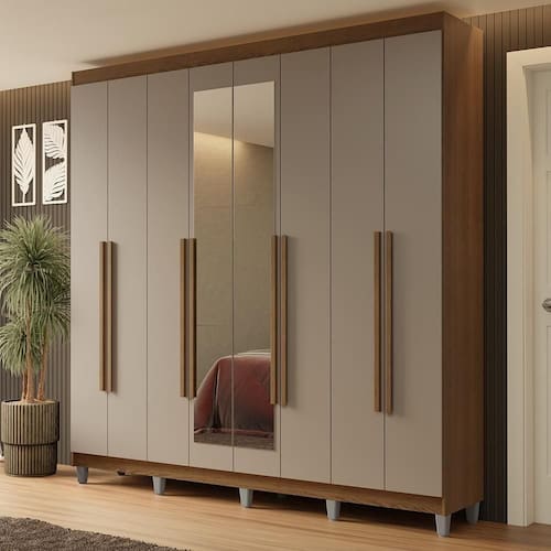 - Um Guarda-Roupa com oito portas batentes sendo duas com espelho