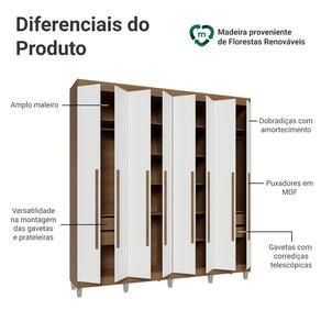 A estrutura e os puxadores em tom amadeirado Rustic combinados com portas Brancas criam um visual elegante e moderno. Os puxadores de 80 cm em MDF destacam o design alongado do móvel, e os pés elevam o guarda-roupa, facilitando a limpeza e valorizando o ambiente.