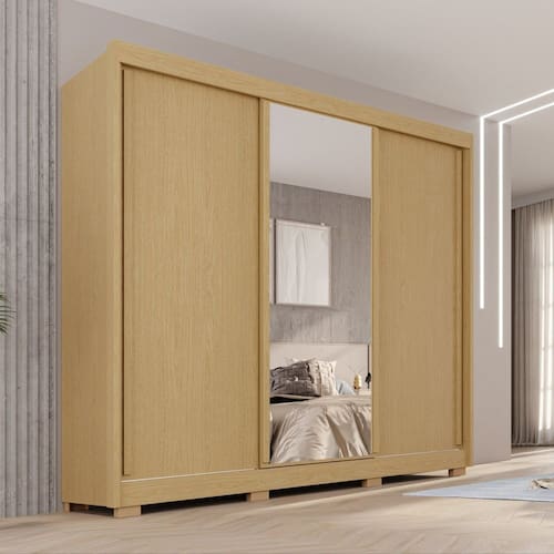 Com muito charme e elegância, o Guarda-Roupa Ipanema veio para transformar o seu espaço de uma vez por todas! Com um lindo design, ele é produzido com materiais resistentes 100% MDF, conta com um espaço interno perfeito ele e ela para manter a organização e espaço do casal com sapateiras embutidas. Falando em visual, você vai amar a versatilidade desta peça, que é flex e pode ter as portas facilmente repaginadas ao seu gosto, além disso o trilho em alumínio faz com que as portas deslizem com facilidade garantindo abertura e fechamento sem esforço! Um quarto do jeitinho que você sempre quis? Nós temos o móvel certo! Acabamento da Prateleira: Pintura UV Escala de Brilho da Prateleira: Semi-Fosco Possui Cabideiros: Sim Acabamento da Gaveta: Pintura UV Possui Organizador de Gaveta: Não Acabamento da Porta: Pintura UV Escala de Brilho da Porta: Semi-Fosco Altura do Espelho: 65 cm Altura dos Pés: 5 cm Altura Máxima dos Pés: 5.0000 Ambiente Principal: Quarto codigo_ean: 7900288322234 Complexidade da Montagem: Alta: deve ser montado por um montador especializado Cor: Jequitibá/ Bege Cor do Produto: Jequitibá/ Bege Escala de Brilho: Semi-Fosco Espessura da Estrutura (mm): 15 mm Espessura das Portas (mm): 15 mm Espessura das Prateleiras (mm): 15 mm Espessura do Espelho: 3 mm Espessura do Fundo (mm): 3 mm Espessura do Fundo das Gavetas (mm): 3 mm Formato do Espelho: Retangular Itens Inclusos: 1 Guarda-Roupa, Kit Ferragens e Manual de Montagem Largura do Espelho: 63 cm Linha ou Coleção: Ipanema Manual de Montagem e Instalação: https://product-hub-prd.madeiramadeira.com.br/195305250/documents/d50d157d-f48d-43fa-aefa-66f85e6ca1513375049352817700590314038.pdf Marca: Sallêto Móveis Material da Gaveta: MDF Material da Porta: MDF Material da Prateleira: MDF Material dos Pés: Polipropileno Material Principal: MDF modular: Não Montagem Flex: Sim, o cliente tem a opção das portas serem flex. Necessita Montagem: Sim Origem do Produto: Nacional Peso: 147 kg Peso Máximo por Gaveta: 5 kg Peso Máximo por Prateleira: 3 kg Possui Calceiros: Não Possui Espelho: Sim Possui Pés: 08 Possui Portas: Sim Possui Prateleiras: Sim Produto Montado: Sim Quantidade de Espelho: 03 Espelhos com Tamanhos Iguais Quantidade de Gavetas: 04 Gavetas Quantidade de Prateleiras: 06 Prateleiras Recomendações de Uso, Manutenção e Limpeza: Limpar com flanela ou pano macio seco. Não utilizar produtos abrasivos. Não expor o produto diretamente à luz solar e à umidade. Sistema de Montagem: Parafusos, Cavilhas e Puxadores. Tipo de Corrediça da Gaveta: Metálica Telescópica Tipo de Dobradiça/Corrediça da Porta: Alumínio Tipo de Fixação do Espelho: Fita Dupla Face Tipo de Gaveta: Interna Tipo de Guarda-Roupa: Casal Tipo de Puxador da Gaveta: Não Possui Tipo de Puxador da Porta: Externo Marca: Não Informado