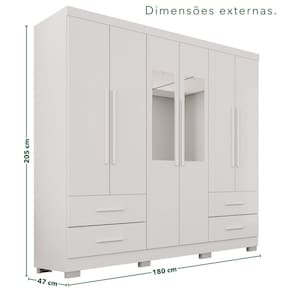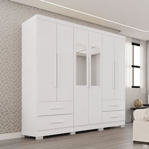 Este lindo Guarda Roupa Sallêto é fabricado com qualidade, diferenciado pela sua resistência, durabilidade, funcionalidade e beleza, ele é a melhor opção para deixar seu dormitório mais arrumado e convidativo. Com corrediças telescópicas que permitem uma abertura total das gavetas, divisões internas que oferecem praticidade e organização, puxadores de madeira que garante maior durabilidade. Se encaixa facilmente em vários estilos de decoração. Aproveite, Móveis Sallêto você merece! Acabamento da Prateleira: Pintura UV Escala de Brilho da Prateleira: Semi-Fosco Possui Cabideiros: Sim Acabamento da Gaveta: Pintura Texturizada UV Material do Puxador da Gaveta: Madeira Maciça Possui Organizador de Gaveta: Não Acabamento da Porta: Pintura UV Escala de Brilho da Porta: Semi-Fosco Material do Puxador da Porta: Madeira Maciça Altura do Espelho: 70 cm Altura dos Pés: 5 cm Altura Máxima dos Pés: 5.0000 Ambiente Principal: Quarto codigo_ean: 7900288322357 Complexidade da Montagem: Alta: deve ser montado por um montador especializado Cor: Branco Cor do Produto: Branco Escala de Brilho: Semi-Fosco Espessura da Estrutura (mm): 12 mm Espessura das Portas (mm): 12 mm Espessura das Prateleiras (mm): 12 mm Espessura do Espelho: 3 mm Espessura do Fundo (mm): 3 mm Espessura do Fundo das Gavetas (mm): 3 mm Formato do Espelho: Retangular Gaveta com Chave: Não Itens Inclusos: 1 Guarda-Roupa, Kit Ferragens e Manual de Montagem Largura do Espelho: 20 cm Linha ou Coleção: Texas Premium Manual de Montagem e Instalação: https://product-hub-prd.madeiramadeira.com.br/958674822/documents/173bc892-e05c-4b21-87aa-59bcd03e9c683373885352817698000506312.pdf Marca: Sallêto Móveis Material da Gaveta: MDP Material da Porta: MDP Material da Prateleira: MDP Material dos Pés: Polipropileno Material Principal: MDP modular: Não Necessita Montagem: Sim Origem do Produto: Nacional Peso: 95 kg Peso Máximo por Gaveta: 5 kg Peso Máximo por Prateleira: 3 kg Possui Calceiros: Não Possui Espelho: Sim Possui Pés: 08 Possui Portas: Sim Possui Prateleiras: Sim Produto Montado: Sim Quantidade de Cabideiros: 02 Cabideiros Quantidade de Espelho: 02 Espelhos com Tamanhos Iguais Quantidade de Gavetas: 04 Gavetas Quantidade de Prateleiras: 05 Prateleiras Recomendações de Uso, Manutenção e Limpeza: Limpar com flanela ou pano macio seco. Não utilizar produtos abrasivos. Não expor o produto diretamente à luz solar e à umidade. Sistema de Montagem: Parafusos, Cavilhas , Minifix, Dobradiças e Puxadores. Tipo de Corrediça da Gaveta: Metálica Telescópica Tipo de Dobradiça/Corrediça da Porta: Telescópica Tipo de Fixação do Espelho: Fita Dupla Face Tipo de Gaveta: Externa Tipo de Guarda-Roupa: Casal Tipo de Puxador da Gaveta: Externo Tipo de Puxador da Porta: Externo Marca: Não Informado