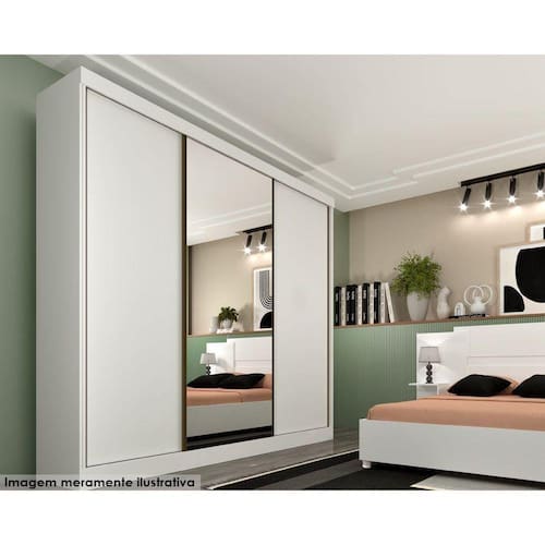 CARACTERÍSTICAS DE MÓVEIS Tipo de Estrutura do Móvel - MDP Tipo de Pintura - UV Tipo de Acabamento da Pintura - Fosca Tipo de puxador - ABS/PVC Quantidade de Prateleiras - 7 Prateleiras Quantidade de Gavetas - 4 Gavetas Diferenciais da Gaveta - c/ Corrediças Telescópicas Quantidade de Portas - 3 Portas de Correr Garantia - 3 meses