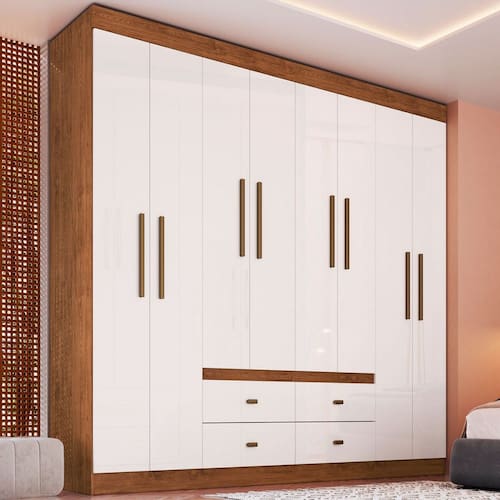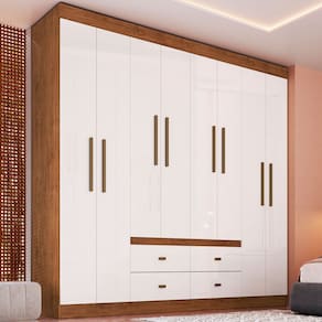 O(a) Guarda-Roupa Casal Dallas 8 Portas 4 Gavetas Castanho/Off White - Loja é produzido em MDP na escala de brilho Semi-Brilho, e possui um grau de dificuldade de montagem: Médio.