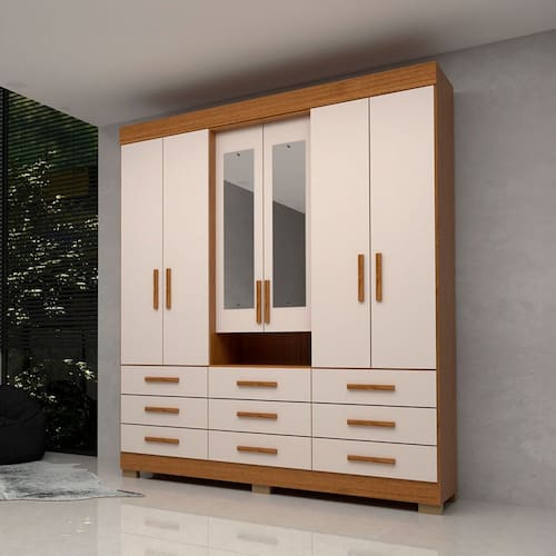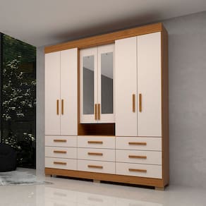 O(a) Guarda-Roupa Casal Débora Capelinha 6 Portas 9 Gavetas com Espelho 100% Mdf Cinamomo/Off White - Acp Móveis é produzido em 100% MDF na escala de brilho Brilhante e Semi-Brilho, e possui um grau de dificuldade de montagem: Médio.