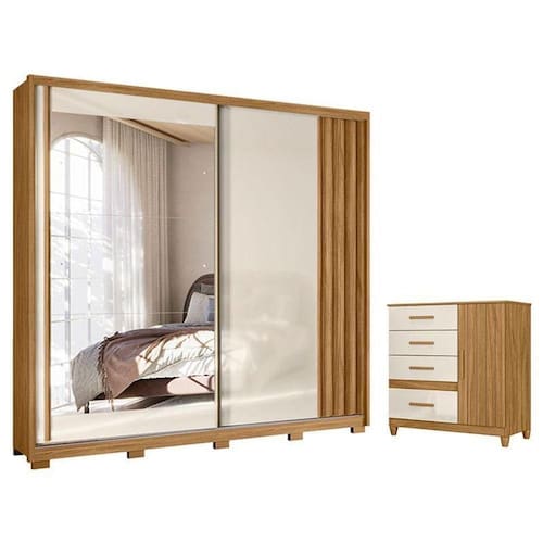 Guarda Roupa Casal Dhara 2 Portas Freijó Off White com Espelho - Moval
