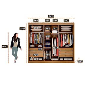 Altura: 236 cm Largura: 241 cm Profundidade: 56 cm.