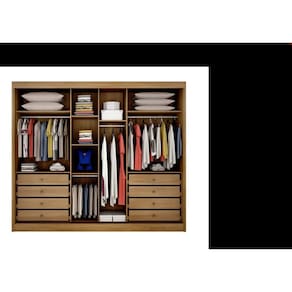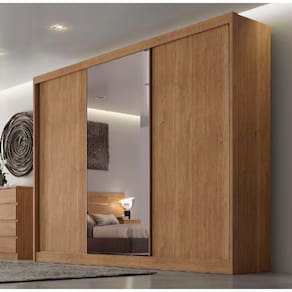 Guarda Roupa Casal Diamond 3 Portas 8 Gavetas 1 Espelho Novo HorizonteO Roupeiro Diamond é um daqueles móveis feitos para organizar e embelezar o ambiente. Ele tem compartimentos que ajudam a arrumar o quarto com facilidade. Com visual elegante, o móvel chama a atenção. A primeira vista, o que costuma impressionar é seu estilo moderno, que se destaca pela simplicidade das linhas retas e as portas de correr sem detalhes, com puxadores nas laterais. Isso reforça a sensação de que ele ocupa pouco espaço.Outro ponto importante é o fato de ele ser um Roupeiro com espelho na porta central. Além de ser chamativo, esse elemento ajuda na rotina, trazendo praticidade para quem vai se arrumar antes de sair.Medidas do Produto Montado:Altura: 236 cmLargura: 241 cmProfundidade: 56 cm.Características:- Produzido em mdf. Esse material é durável contra a ação do tempo e firme contra a envergadura por peso;- Reforço no espelho, que é revestido com película de segurança, reduzindo o risco de quebra;- Corrediças telescópicas nas gavetas que permitem um deslize amplo e suave no movimento de puxar;- Possui cabideiro e calceiro em alumínio, e o trilho inferior possui roldanas para rolamento;- Espaço reservado para roupas longas;- Prateleiras espaçosas para organização de camisas, calças, acessórios e até o jogo de cama;- 8 Gavetas;- 8 Prateleiras;- 4 Cabideiros;- Necessário Montagem: Sim.Recomendações de uso, manutenção e limpeza: Pano levemente umedecido com sabão neutro.Informações importantes:- Não responsabilizamos pela montagem e instalação dos produtos. A montagem deve ser realizada por um profissional, conforme as instruções do manual do produto. A responsabilidade da montagem é do consumidor.- Os Objetos que ambientam as imagens não acompanham o produto.- Pode haver alguma diferença de tonalidade entre a foto e o produto, devido ao tratamento de imagens e a calibração do seu monitor ou dispositivo.- A entrega é realizada por transportadora, não nos responsabilizamos, no ato da entrega por desmontagens, subir escadas/elevadores ou transporte por guincho para apartamentos. Eventuais despesas são de responsabilidade do consumidor.- Antes de comprar o seu produto verifique as medidas e o local onde pretende instalar.