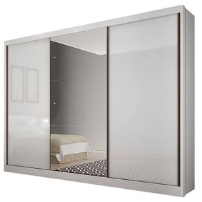 Guarda Roupa Casal Duna 3 Portas 4 Gavetas Neve com Espelho – Novo Horizonte