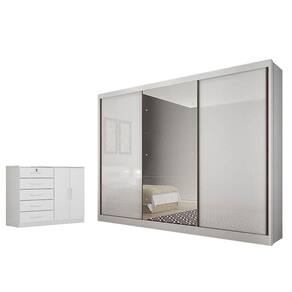 Guarda Roupa Casal Duna com Espelho e Cômoda Seul Neve - Horizonte