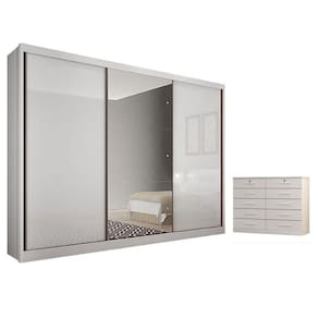 Guarda Roupa Casal Duna com Espelho e Gaveteiro Milão com Chave Neve - Novo Horizonte