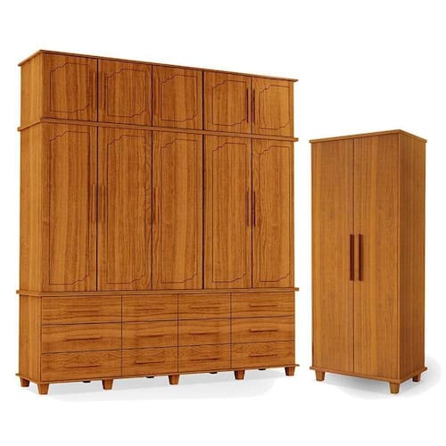 Guarda Roupa Casal e Armário Multiuso Berlim Freijó Luapa Móveis