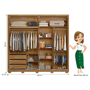 Começou a montar seu quarto? Então apresentamos para você este belo conjunto composto pelo guarda roupa e cômoda da linha Dhara. O guarda roupa conta com duas portas deslizantes, sendo uma com espelho. Os detalhes ripados agregam charme, enquanto internamente suas três gavetas oferecem mais organização. Complementando o conjunto, a cômoda possui quatro gavetas. Assim como o guarda roupa, a cômoda possui corrediças telescópicas e pés em PVC. Fabricados pela Moval, são desenvolvidos em MDP de alta qualidade, perfeito para quem busca praticidade e estilo, aproveitem!