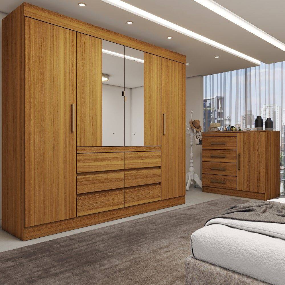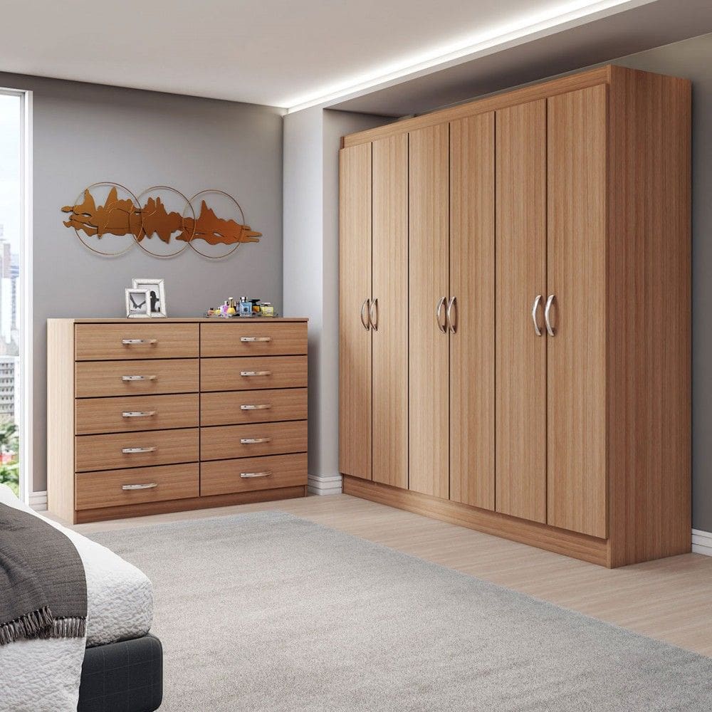 Guarda-Roupa Casal Aiden 6 Portas 2 Gavetas com Cômoda 10 Gavetas Cinamomo - Panorama Móveis