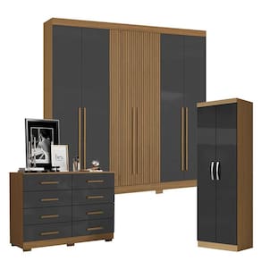 Guarda Roupa Casal Modena com Cômoda Cannes 5 Gavetas e Armário Multiuso Recife Carvalho Americano Grafite – Incorplac