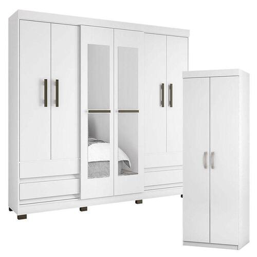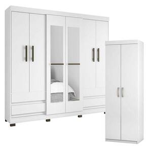 Guarda Roupa Casal E2264 e Armário Multiuso 6020 Branco Brilho - Araplac