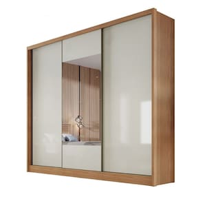Guarda Roupa Casal em MDF com Espelho 3 Portas de Correr Medelim Novo Horizonte - Branco | Cinamomo