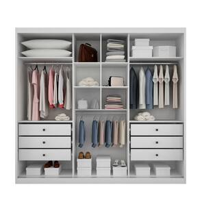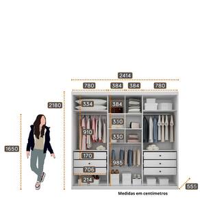 Características: 6 Gavetas com corrediças telescópicas e puxadores 6 Nichos 3 Portas de Correr 2 Maleiros Cabideiros e calceiro em alumínio Estrutura 100 MDF em 25mm Kit de 3 espelhos parafusados Interno ele e ela Perfil puxador e batente alinhador em alumínio Roldana superior com guia zero e freio Trilho inferior em alumínio e roldanas com amortecedores