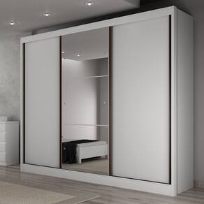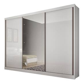 Guarda Roupa Casal em MDF com Espelho 3 Portas de Correr Sonetto Novo Horizonte - Branco
