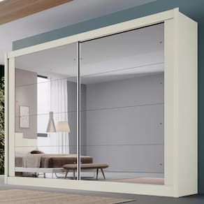 Guarda Roupa Casal Espelhado 2 Portas 4 Gavetas - Creta-Off White - Móveis Europa Todo mundo sonha em ter um quarto grande, amplo e com aquele toque de quarto de revista, este roupeiro vai lhe proporcionar este momento. Fabricado em MDF, possui 2 portas de deslizar, 4 gavetas internas espaçosas com corrediças telescópicas e uma excelente repartição e espaço interno para sapatos, roupas de vestuário e cama. Imperdível este roupeiro. Confira e aproveite! Faz parte deste ambiente: 1 Guarda Roupa Casal Espelhado 2 Portas 4 Gavetas - Creta - Móveis Europa Obs: Objetos de decoração não inclusos. Particularidades do guarda-roupa: Características: - Fabricado em 100% MDF - Amplo espeço interno - Roldanas com sistema de amortecimento e regulagem - Gavetas espaçosas com puxadores em poliestireno na cor champagne - Gavetas com corrediças telescópicas - Modulação interna versátil que permite acomodar vestidos longos - Portas com design minimalista - Compartimento específico para acomodar sapatos - Costas parafusadas - Puxadores em MDF embutidos nas portas - Profundidade ideal para acomodar cabides - Cabideiros resistentes em alumínio Dimensões: Altura: 2,35 metros Largura: 2,50 metros Profundidade: 63,5 centímetros Informações Importantes: -O envio desse produto é feito através de transportadora. -Produtos podem apresentar diferenças de tonalidades entre a foto na tela e o produto real, devido a calibração de cor de tela. -Limpar com flanela ou pano macio. Não utilizar álcool. Não utilizar produtos abrasivos ou corrosivos. -Nós prezamos pela qualidade da entrega em primeiro lugar, trabalhamos com transportadoras altamente selecionadas e os melhores materiais de embalagem. -A montagem é de total responsabilidade do comprador. Antes de comprar, verifique o espaço disponível para a montagem. -Certifique-se de que o produto caiba em elevadores e vãos de escadas, não fazemos içamentos. Quaisquer despesas deste tipo ficam a cargo do cliente -Garantia de 3 meses contra defeitos de fabricação.