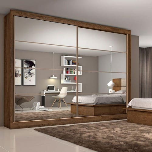 Guarda Roupa Casal Espelhado 2 Portas 6 Gavetas - Sevilha-Braúna - Made Marcs