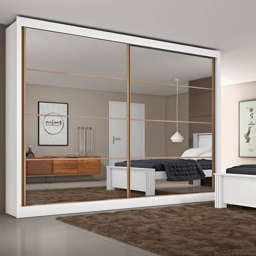 Guarda Roupa Casal Espelhado 2 Portas 6 Gavetas - Sevilha-Branco Acetinado - Made MarcsQuer dar um ar de modernidade ao seu dormitório? O Guarda Roupa Sevilha é ideal! Produzido com chapas 100% MDF, com costas parafusadas para dar maior durabilidade. Possui 2 portas de correr em simples abertura com trilho inferior de alumínio, roldana regulável com mola anti-descarrilhamento, perfil/puxador na cor Bronze, 6 gavetas com corrediças telescópicas que permitem deslizar suave, abertura total e maior suporte de peso (até 5kg), 10 prateleiras (suportam até 5kg) duas das prateleiras são removíveis para melhor adaptação do espaço conforme sua necessidade garantido melhor aproveitamento interno e 4 cabideiros em alumínio. Para afirmar a excelência do produto, as embalagens seguem as normas da ABNT, utilizando caixas em papelão reforçado, as peças são separadas com isomanta, os topos das caixas possuem reforço para evitar danos as quinas e o fechamento da caixa com fita de arquear e plástico termoincolhível. Utilizamos material ecologicamente correto. Este produto conta ainda com pintura verniz UV que da um lindo acabamento. É ideal para complementar a decoração de seu dormitório.Faz parte deste ambiente:Guarda Roupa Casal Espelhado 2 Portas 6 Gavetas - Sevilha-Branco Acetinado - Made MarcsObs: Objetos de decoração não inclusos.Particularidades do guarda-roupa:Características:- 100% MDF- Ótimo aproveitamento do espaço interno- Roldanas com sistema de amortecimento e regulagem- Gavetas com corrediças telescópicas- Cabideiros e calceiros metálicos e espaçosos- Perfil das portas e puxador na cor bronze- Divisão Ele e Ela- Compartimento para malas e roupas de camaDimensões:Altura: 2,37 metrosLargura: 2,28 metrosProfundidade: 55,8 centímetrosInformações Importantes:-O envio desse produto é feito através de transportadora.-Produtos podem apresentar diferenças de tonalidades entre a foto na tela e o produto real, devido a calibração de cor de tela.-Limpar com flanela ou pano macio. Não utilizar álcool. Não utilizar produtos abrasivos ou corrosivos.-Nós prezamos pela qualidade da entrega em primeiro lugar, trabalhamos com transportadoras altamente selecionadas e os melhores materiais de embalagem.-A montagem é de total responsabilidade do comprador. Antes de comprar, verifique o espaço disponível para a montagem.-Certifique-se de que o produto caiba em elevadores e vãos de escadas, não fazemos içamentos. Quaisquer despesas deste tipo ficam a cargo do cliente-Garantia de 3 meses contra defeitos de fabricação.