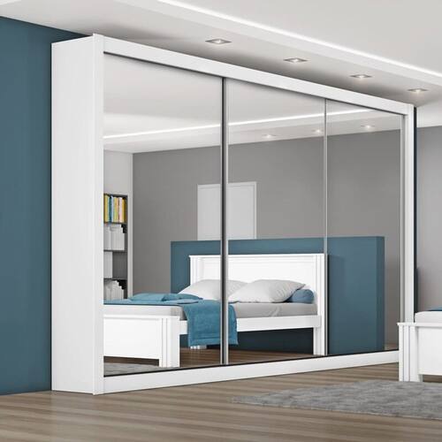 Guarda Roupa Casal Espelhado Costas 3mm - Toronto-Branco Acetinado - Móveis EuropaO Guarda Roupa Toro é uma união de qualidade, tamanho e beleza. Este Guarda Roupa é perfeito para seu espaço, possui excelente espaço interno com 6 gavetas com corrediças telescópicas que permite maior aproveitamento interno, e duas gavetas possuem chaves para armazenar com segurança seus pertences. Possui compartimento para malas e roupas de camas, prateleiras fixas e prateleiras removíveis , para pode acomodar roupas longas e compartimento para calçados. Para maior durabilidade possui costas grossas parafusada de 3mm, trilho superior e inferior em alumínio. As portas espelhadas possuem molduras de alumínio. Possui roldana com molas, nesse sistema a porta não sai do trilho. É o guarda ideal para você! Confira e aproveite!Faz parte deste ambiente:Guarda Roupa Casal Espelhado Costas 3mm - Toronto-Branco Acetinado - Móveis EuropaObs: Objetos de decoração não inclusos.Particularidades do guarda-roupa:Características:- 100% MDF- Gavetas com corrediças telescópicas- Duas gavetas com chave- Portas espelhadas com moldura em alumínio- Cabideiros e calceiros espaçosos em alumínio- Modulado para roupas longas- Roldanas com sistema de amortecimento e regulagem- Prateleiras removíveis- Trilho superior e inferior em alumínio- Costa parafusada 3mm- Espelhos com película de segurança Dimensões:Altura: 2,35metrosLargura: 2,75 metrosProfundidade: 63,5 centímetrosInformações Importantes:-O envio desse produto é feito através de transportadora.-Produtos podem apresentar diferenças de tonalidades entre a foto na tela e o produto real, devido a calibração de cor de tela.-Limpar com flanela ou pano macio. Não utilizar álcool. Não utilizar produtos abrasivos ou corrosivos.-Nós prezamos pela qualidade da entrega em primeiro lugar, trabalhamos com transportadoras altamente selecionadas e os melhores materiais de embalagem.-A montagem é de total responsabilidade do comprador. Antes de comprar, verifique o espaço disponível para a montagem.-Certifique-se de que o produto caiba em elevadores e vãos de escadas, não fazemos içamentos. Quaisquer despesas deste tipo ficam a cargo do cliente-Garantia de 3 meses contra defeitos de fabricação.