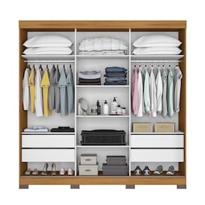 Cor: Freijó/Off-White | Altura (cm): 206,5 | Largura (cm): 181,5 | Profundidade (cm): 54,9 | Quantidade de portas: 3 | Quantidade de gavetas: 4 | Estilo: Moderno | Conteúdo da Embalagem: 1 Guarda Roupa e Manual de Montagem | Tipo de Guarda Roupa: Casal | Tonalidade: Off-White