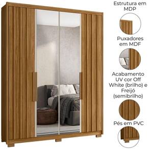 O Guarda-Roupa Casal Califórnia é a escolha ideal para quem busca praticidade sem abrir mão do design moderno. Estrutura em MDP (15/12 mm) e acabamento em pintura UV. Composto por portas com dobradiças metálicas (detalhe frisado nas laterais e espelho nas centrais), prateleiras internas, cabideiro interno (alumínio) e gavetas com corrediças metálicas. Produto com dupla opção de montagem: pés em PVC ou sapatas plásticas (2 mm), conforme preferência do cliente. Este produto será entregue em 05 volumes.