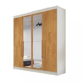 Características: 4 Portas 3 Gavetas, sendo 1 com chave Estrutura em MDF Corrediças telescópicas Prateleira Acabamento em verniz UV Cabideiros de alumínio Puxadores externos em madeira Espelho