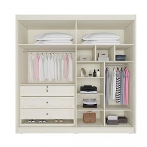 O Roupeiro Nantes une comodidade, espaço e beleza em um só produto. Produzido em MDF, possui 4 portas de bater e 3 gavetas com corrediças telescópicas e uma linda e pratica sapateira com corrediça telescópica; costas parafusadas que aumenta a resistência do móvel. Este produto conta ainda com prateleiras espaçosas e colmeia e puxadores em madeira.