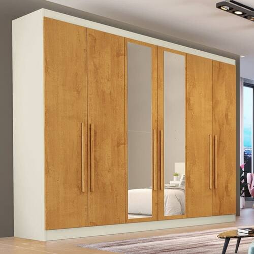 Guarda Roupa Casal Espelho 6 Portas 6 Gav Oslo Made Marcs - Off White