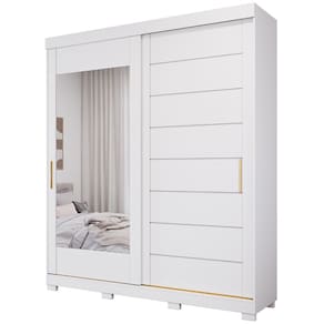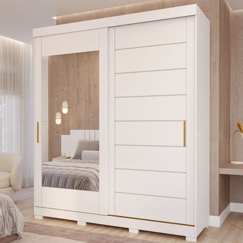 Guarda Roupa Casal Espelho e Pés 2 Portas de Correr 4 Gavetas Flora Panan - Branco